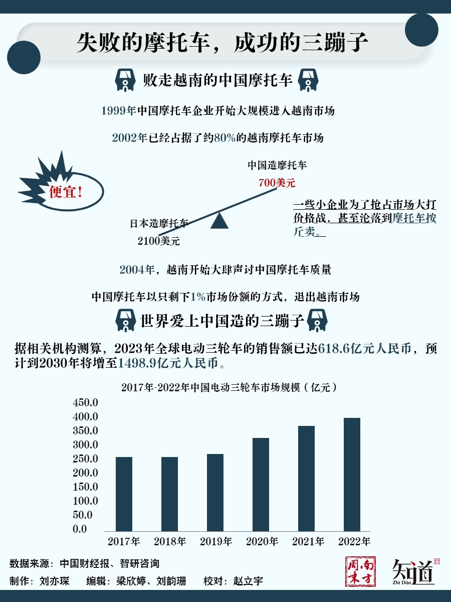 尽管世纪初中国摩托车的出口之路曾遭遇重创,但三蹦子的出海却俨然“王者归来”。据相关机构测算,2023年全球电动三轮车的销售额已达人民币618.6亿元,预计到2030年将增至人民币1498.9亿元。